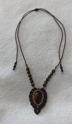Colar de macramê com Colar com Olho de Tigre